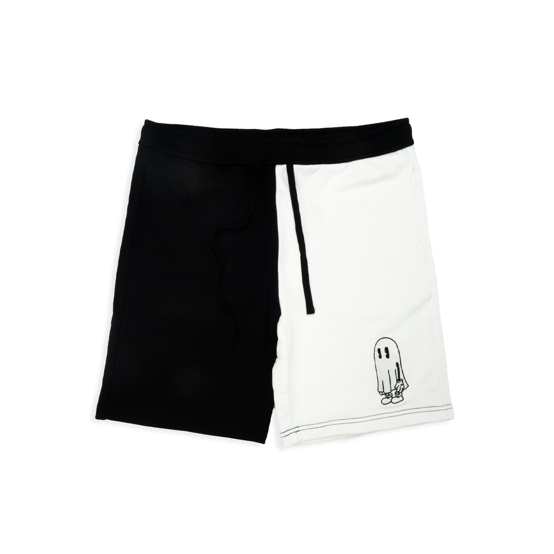 Show them both your sides at once, featuring a black and white short with the "Ghost With A-" Logo embroidered on the side, made with 100% French Terry Cotton.